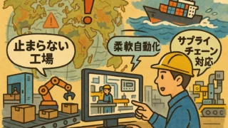 事例紹介 サプライチェーン混乱時代に強い自動化戦略の条件 部品調達の遅れや物流停滞など、サプライチェーンの混乱に対応できる「強い自動化戦略」とは?柔軟性・可視化・分散化の観点から初心者にも分かりやすく解説します。 2025.05.27 事例紹介