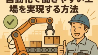 事例紹介 生産性だけじゃない!自動化で働きやすい工場を実現する方法:初心者向け解説 自動化を活用して従業員の負担軽減・安全性向上・教育効率化を実現し、働きやすい工場をつくる方法を初心者向けに解説します。 2025.05.14 事例紹介