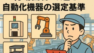 事例紹介 なぜこの機種を選んだ?現場目線で選ぶ自動化機器の選定基準:初心者向け解説 自動化機器を現場目線で選ぶための7つの基準と、実際の選定事例を初心者向けにわかりやすく解説。導入前に確認すべきポイントも紹介します。 2025.05.14 事例紹介