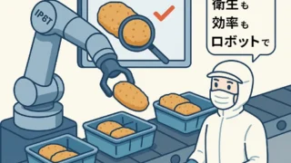 事例紹介 冷凍食品製造ラインにおける衛生型ロボットの応用 冷凍食品製造ラインで求められる衛生管理と生産効率向上を両立する衛生型ロボットの導入メリットと実践例を、成形・パッキング・洗浄対応の事例で初心者向けに解説。 2025.04.18 事例紹介