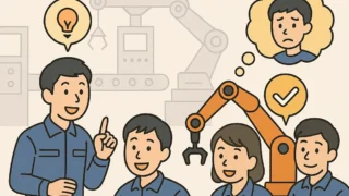 事例紹介 自動化と心理的安全性の関係を現場視点で考える 製造現場での自動化と心理的安全性の関係を初心者向けに解説。導入前の現場巻き込み、失敗許容の文化醸成、役割再定義、データ共有など具体策を事例で紹介。品質安定やトラブル未然防止、改善提案促進のコツまで、安心感と生産性向上のポイントを網羅。 2025.04.17 事例紹介