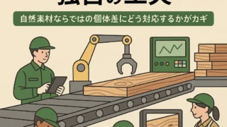 事例紹介 木材加工工場での自動化導入事例と独自の工夫 木材加工工場における人手不足と天然素材の個体差を克服する自動投入ライン、AI画像処理切断、含水率制御、AI検査などの導入事例と現場発想の独自工夫を初心者向けに分かりやすく解説。歩留まり改善や生産性向上の具体的効果と今後の展望も提示。 2025.04.17 事例紹介